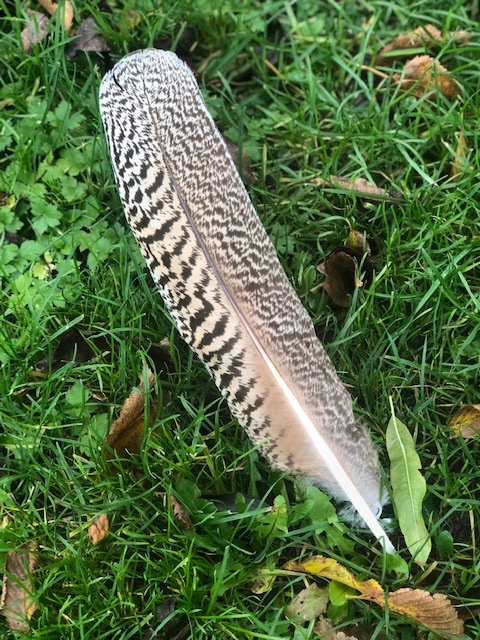 Een veer: als aanmoediging, dat je de juiste stappen zet op je levenslat, als bevestiging, dat je het goed doet op je levenspad.